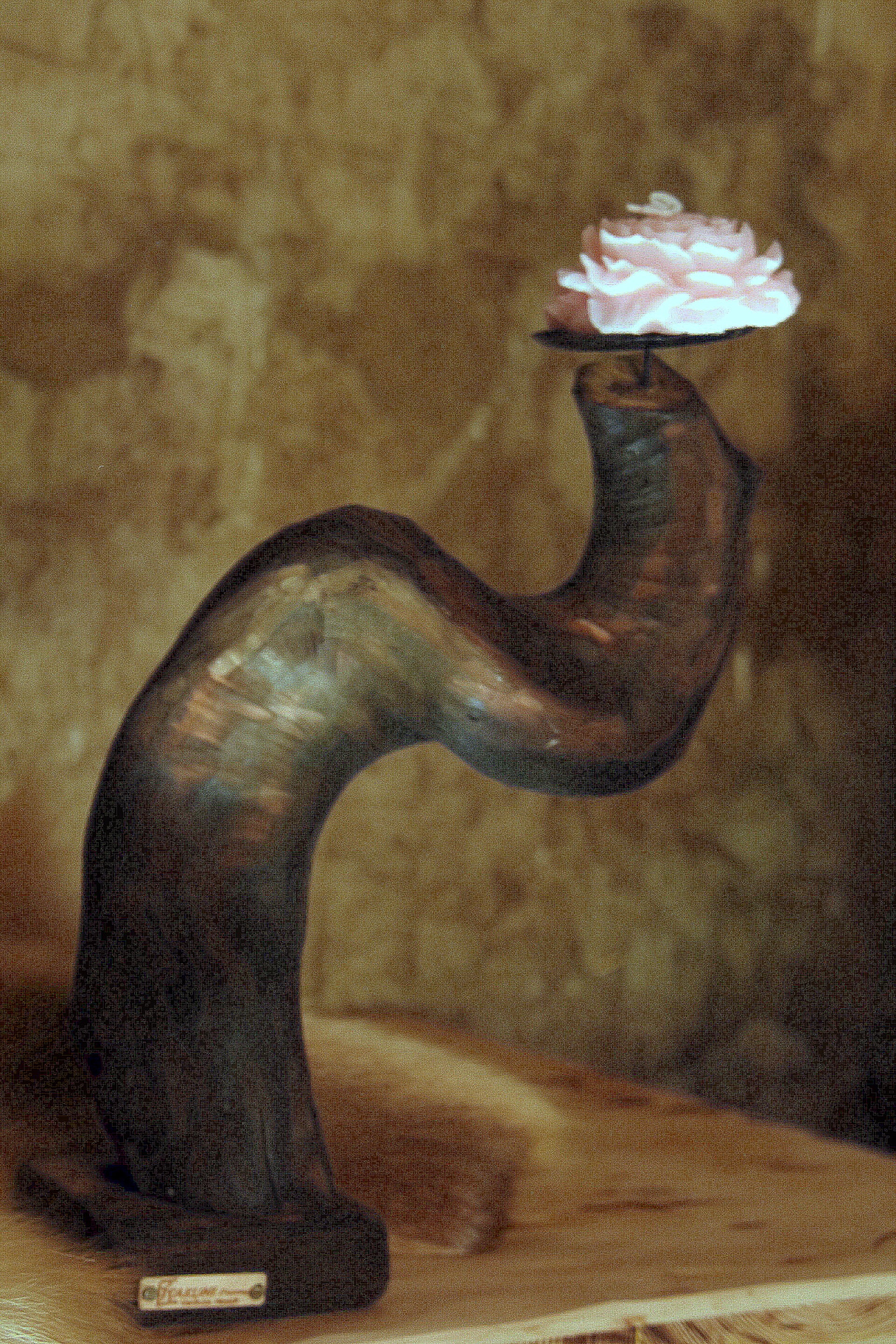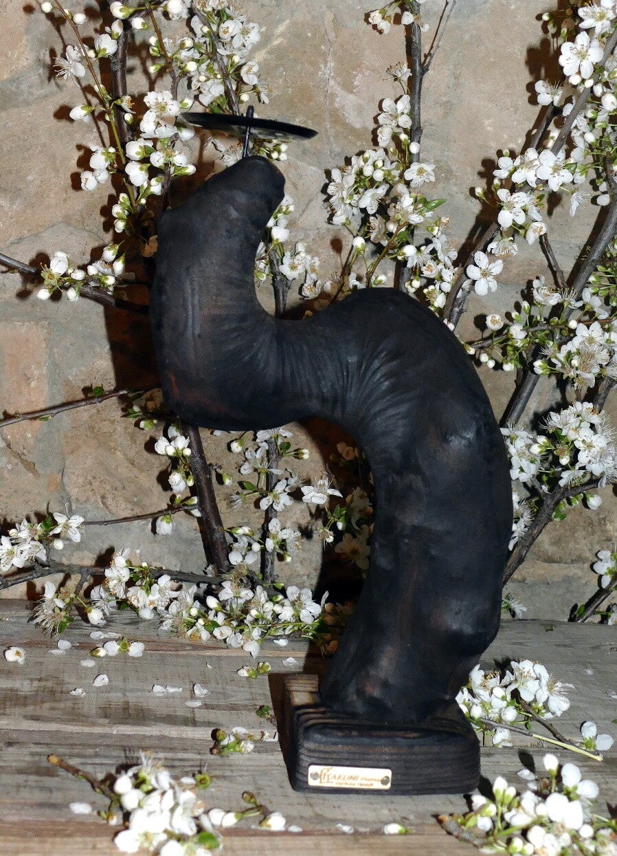 Pieza única de portavelas de tronco de álamo negro retorcido tratado con la técnica YAKISUGI (consiste en quemar la madera). Diferente, única e irrepetible.